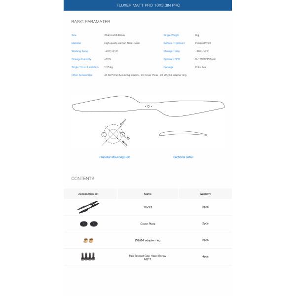 10x3.3 Inch FLUXER PRO MATT Matte straight paddle propeller